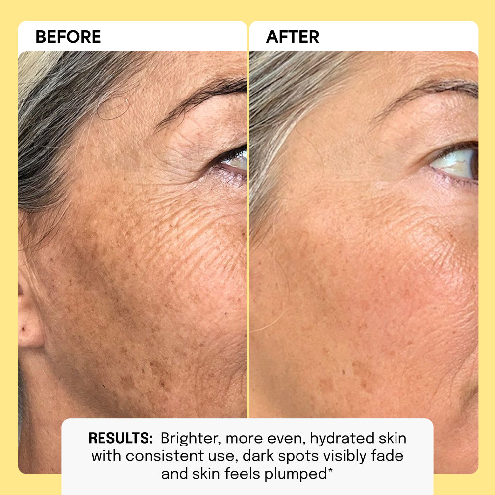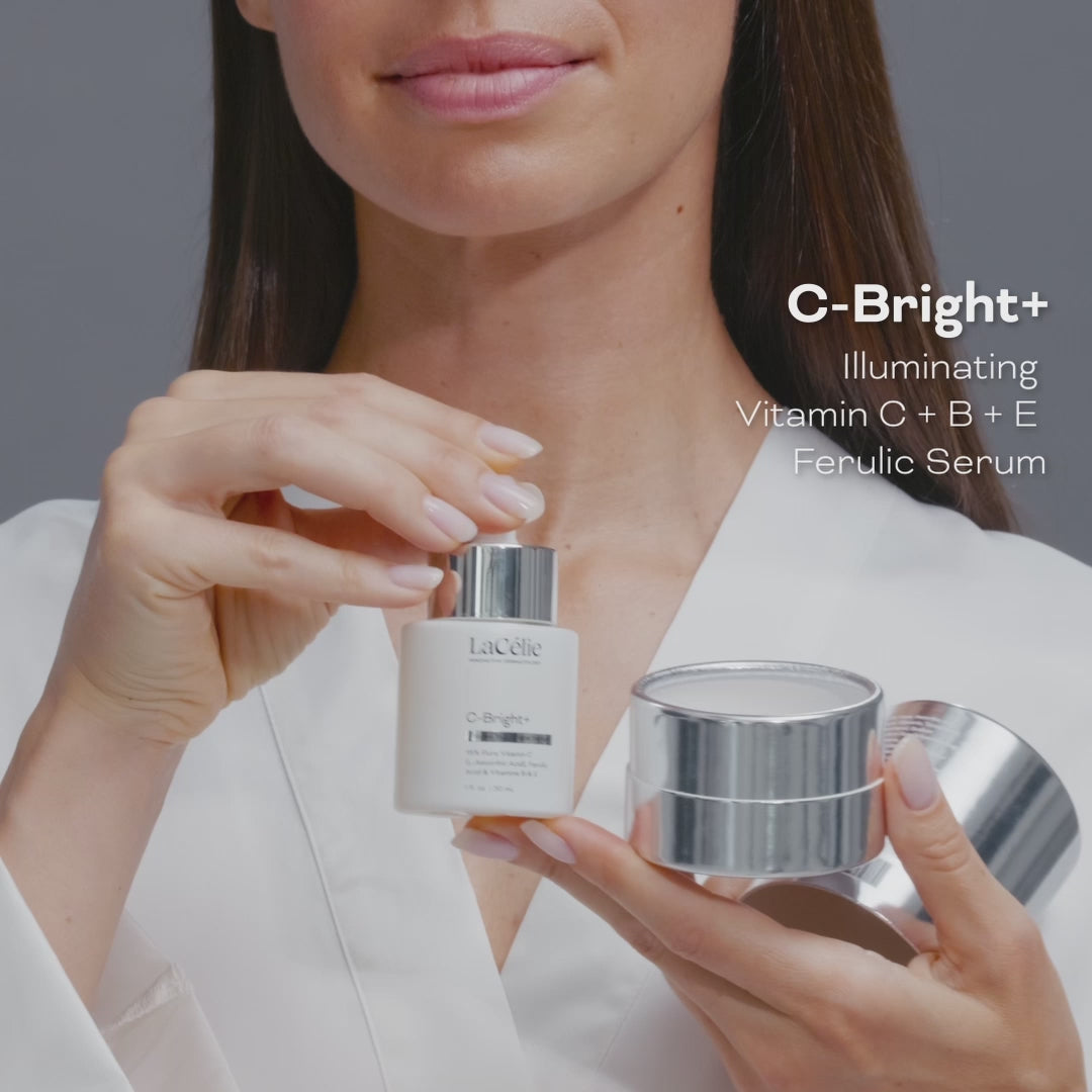 Morning: Apply 2–3 drops of C-Bright+ Serum to clean face and neck each morning. Gently press into skin to brighten, even tone, and protect against environmental stress. Follow with SPF for daytime protection.