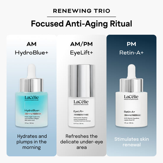 In the evening, apply Retin-A+ Renewing Serum evenly to face and neck after cleansing. Massage gently to smooth, brighten, and stimulate skin renewal. Start by using every 2–3 nights to allow your skin to adjust, then increase to nightly use as tolerated.