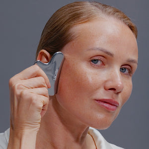 Use the metal Gua-Sha to gently massage the face and boost circulation. Perform the Gua-Sha before applying any active serums, and follow immediately with your chosen serum for optimal absorption and results.