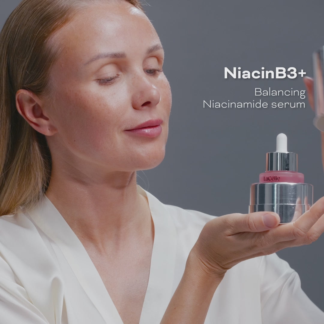 Morning: Apply 2–3 drops of NiacinB3+ Balancing Serum to clean face. Press gently to control oil, smooth bumpy skin, and refine pores. Follow with SPF for daytime protection.